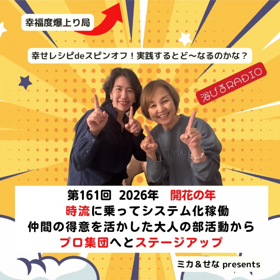 - 【第161回】幸せレシピdeスピンオフ! 実践するとど~なるのかな? ~2026年開花の年時流に乗ってシステム化稼働仲間の得意を活かした大人の部活動からプロの集団へとステージアップ~ ♯スピリ