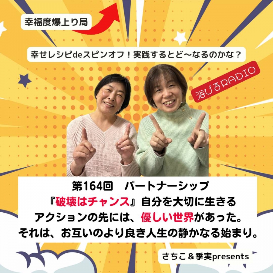 - 【第164回】幸せレシピdeスピンオフ! 実践するとど~なるのかな? ~パートナーシップ「破壊はチャンス」自分を大切に生きる アクションの先には、優しい世界があった。~ ♯スピリチュアル
