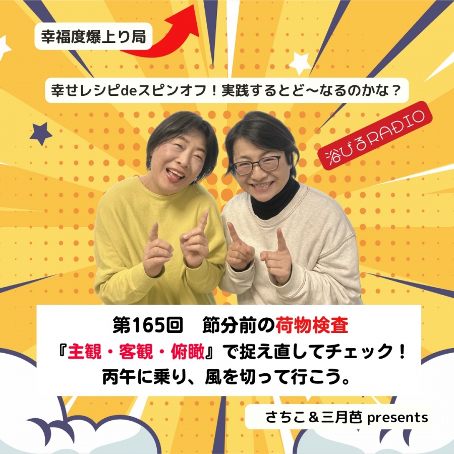 - 【第165回】幸せレシピdeスピンオフ! 実践するとど~なるのかな? ~節分前の荷物検査『主観・客観・俯瞰』で捉え直してチェック!丙午に乗り、風を切って行こう~ ♯スピリチュアル