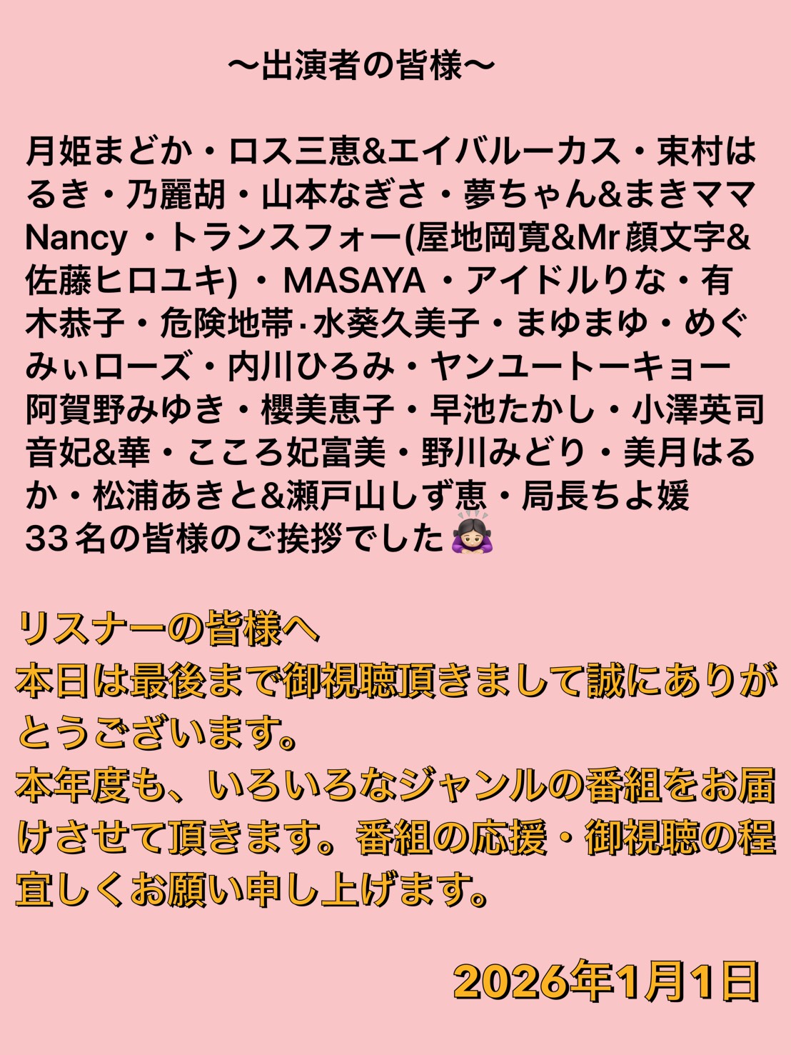2026/01/01【美遊空間】【お正月特別番組】【第98回】《 総勢34人からのご挨拶で~す~謹賀新年 》【美遊空間四国30分番組】#エンタメ・スポーツ