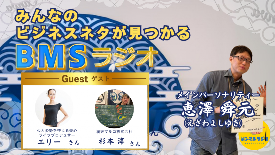 - みんなのビジネスネタが見つかるBMSラジオ【74回目】満天マルコ株式会社杉本淳さんと心と姿勢を整える美心ライフプロデューサーのエリーさんが業界の舞台裏子供食堂をやりたいきっかけを語ります#趣味・グルメ