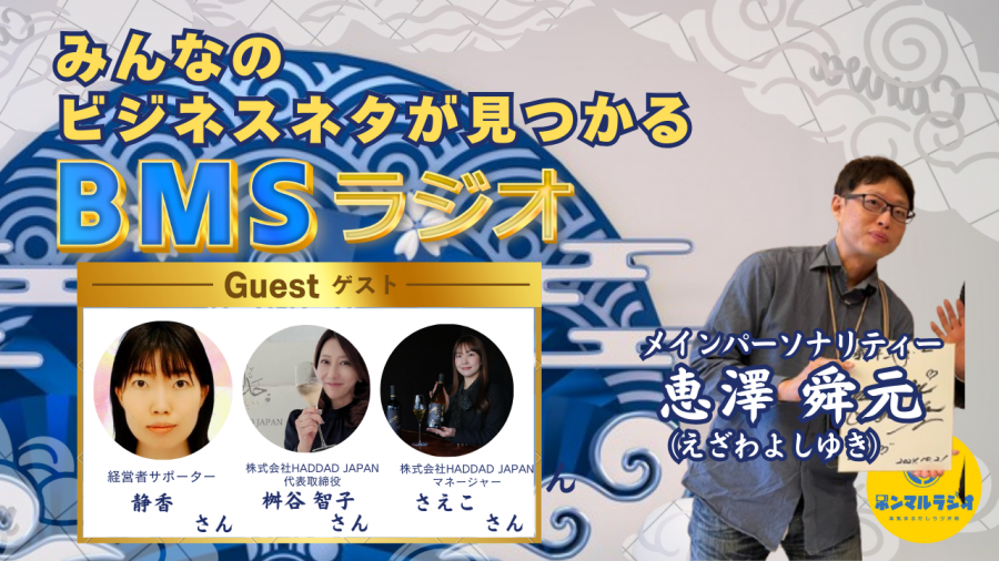 - みんなのビジネスネタが見つかるBMSラジオ【79回目】経営者サポーターの静香さんと桝谷智子さんとさえこさんが業界の舞台裏個性鑑定学と砂漠のワインについて語ります#スピリチュアル
