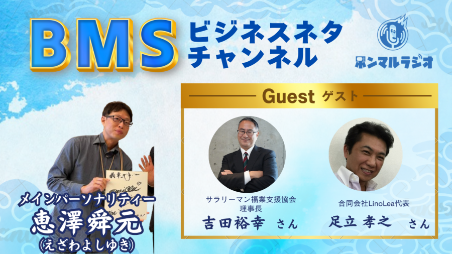 - BMSビジネスネタチャンネル【1157回目】合同会社LinoLea代表の足立孝之さんと吉田裕幸さんが業界の舞台裏物販スクールについて語ります #政治経済