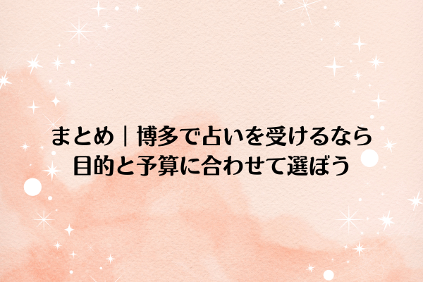 まとめ|博多で占いを受けるなら目的と予算に合わせて選ぼう