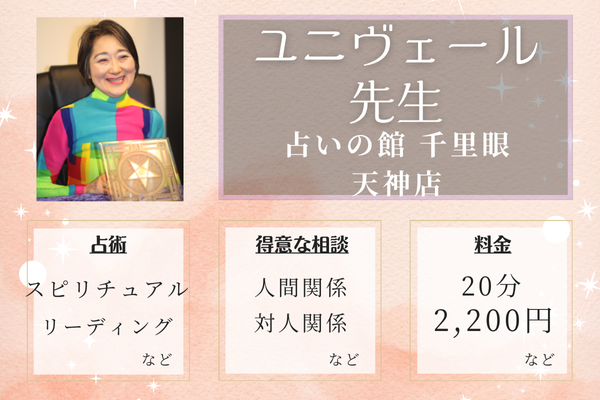 博多エリアで「当たる占い」「最後に行く占い」との口コミで高い評価を得ています。