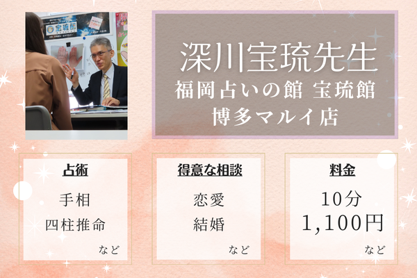1位:福岡占いの館 宝琉館 博多マルイ店|深川宝琉(ふかわほうりゅう)先生