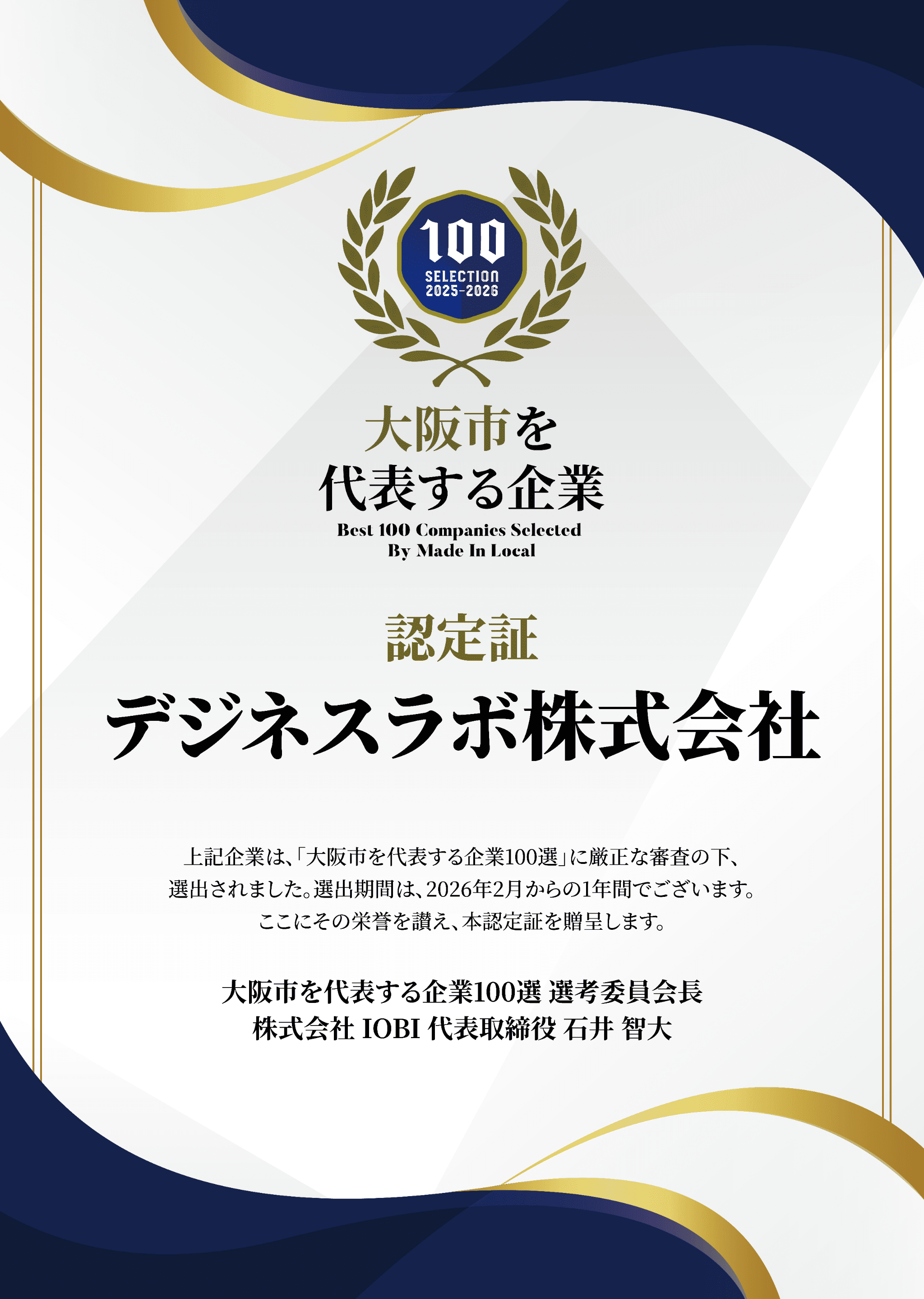 ・代表取締役を務める1人社長で法人化後わずか2年以内に株式会社IOBI様より大阪市約11万社の中から大阪市を代表する企業100選に選出された会社HP