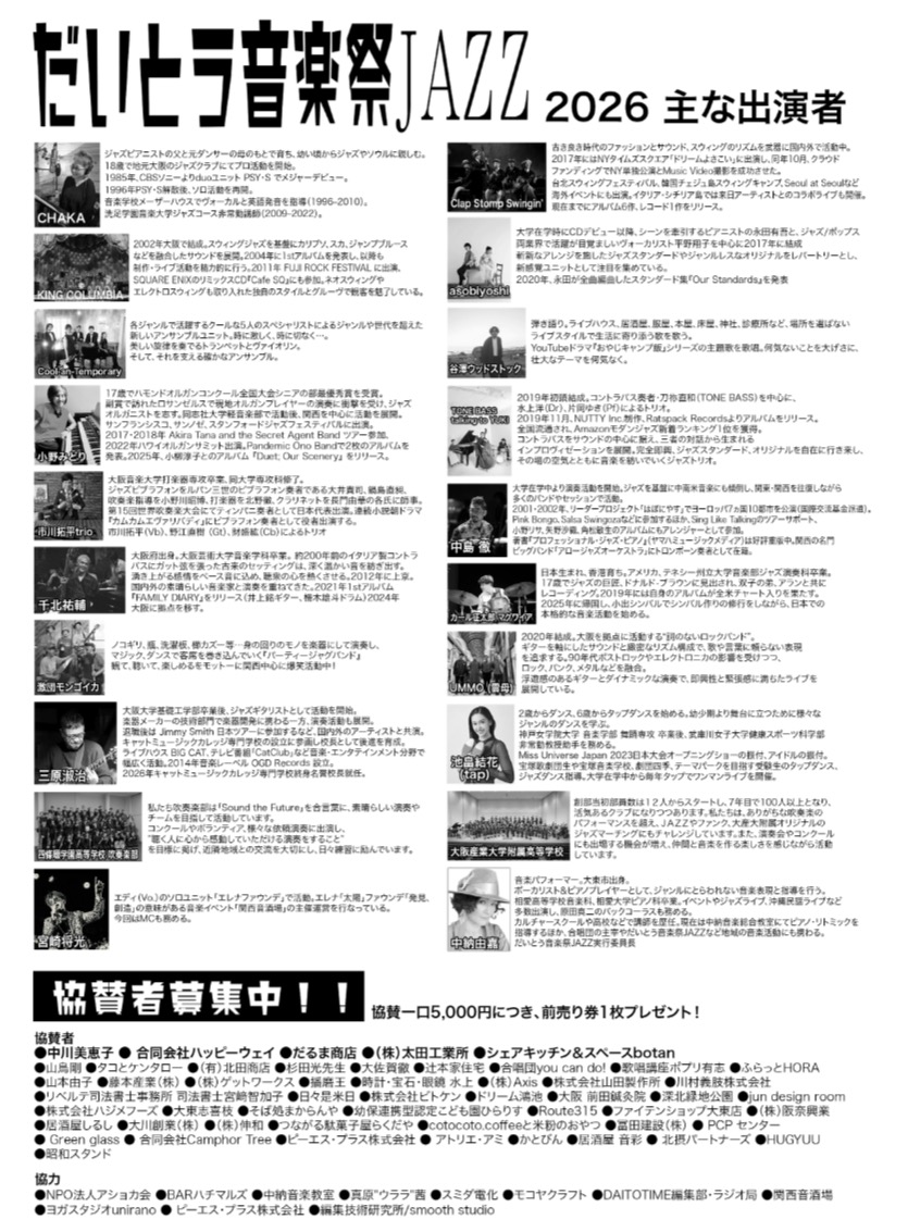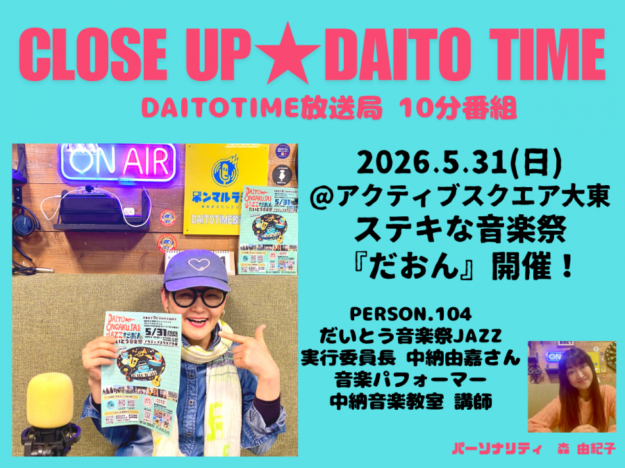 2026/04/25【大東放送局】DAITOTIME放送局『クローズアップDAITOTIME』だいとう音楽祭JAZZ 実行委員長 中納由嘉さん① #エンタメ・スポーツ