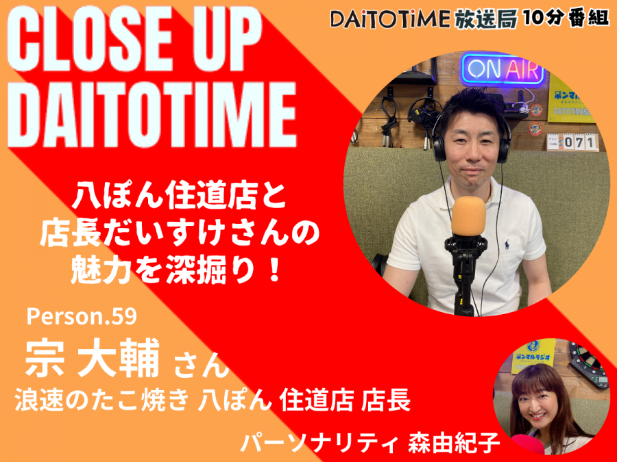 - DAITOTIME放送局『クローズアップDAITOTIME』浪速のたこ焼き 八ぽん住道店 店長 宗大輔さん② #趣味・グルメ