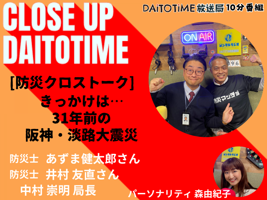 - DAITOTIME放送局『クローズアップDAITOTIME』防災クロストーク①防災士・あずま 健太郎さん&井村 友直さんと中村局長 #福祉介護・生活