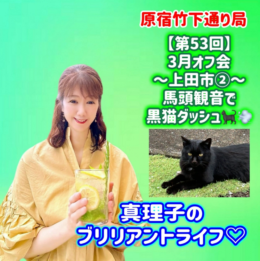 - 【大藤真理子】真理子のブリリアントライフ♡【第53回】 3月オフ会〜上田市編② 馬頭観音で黒猫ダッシュ!(#趣味グルメ)
