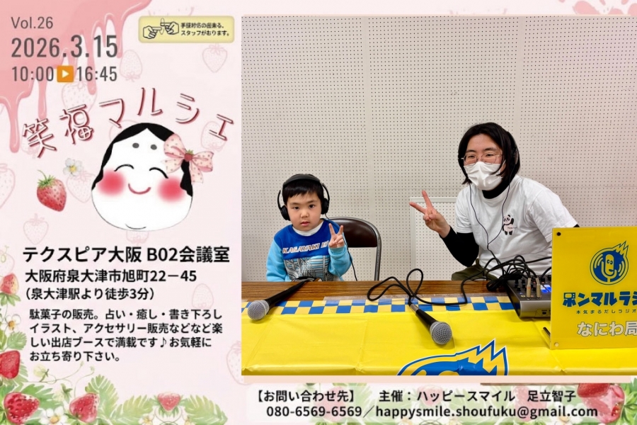 | 過去の放送一覧 | 26年3月15日(日)開催『笑福マルシェ』 in大阪・泉大津市【大阪なにわ局】 |