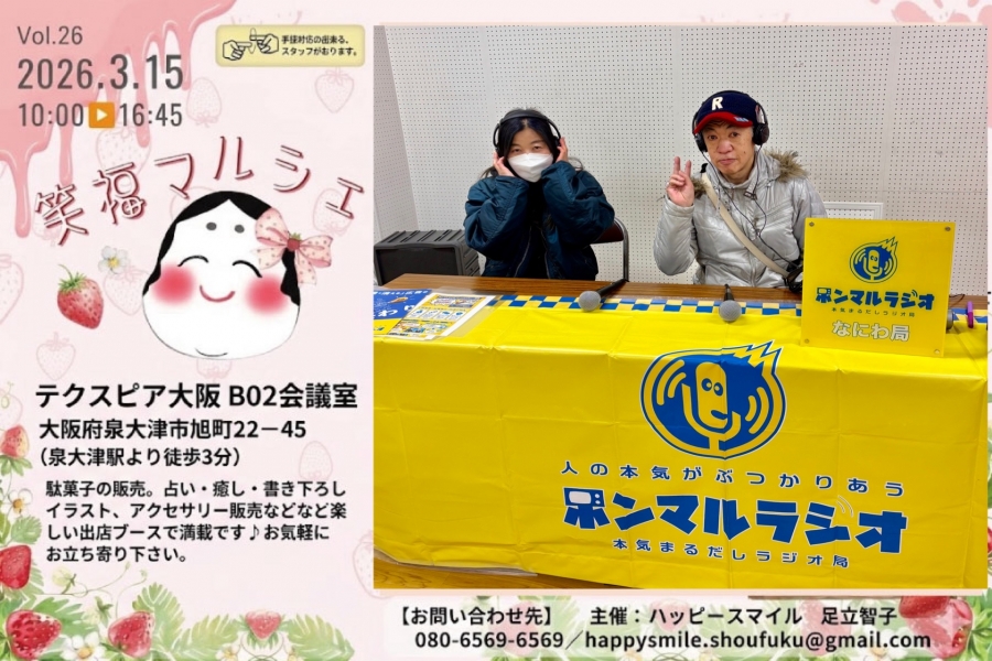 | 過去の放送一覧 | 26年3月15日(日)開催『笑福マルシェ』 in大阪・泉大津市【大阪なにわ局】 |