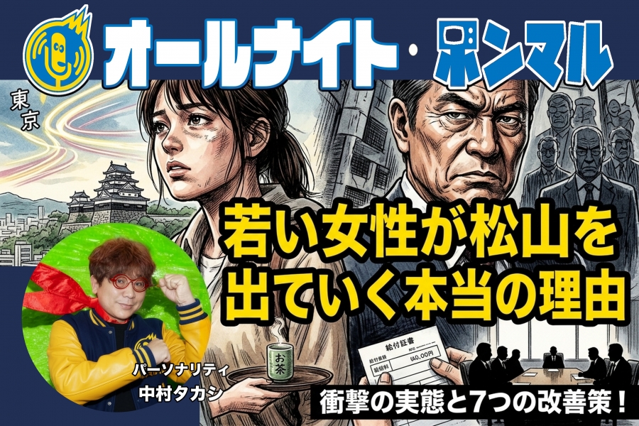 今夜のオールナイトホンマルは、愛媛県が直面する深刻な人口問題に真正面から向き合います。15歳から29歳の若年女性の流出率が全国ワーストレベルという衝撃的なデータ。
