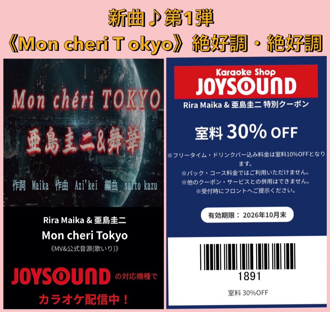 ☆新曲♪第1弾『Mon cheri Tokyo』