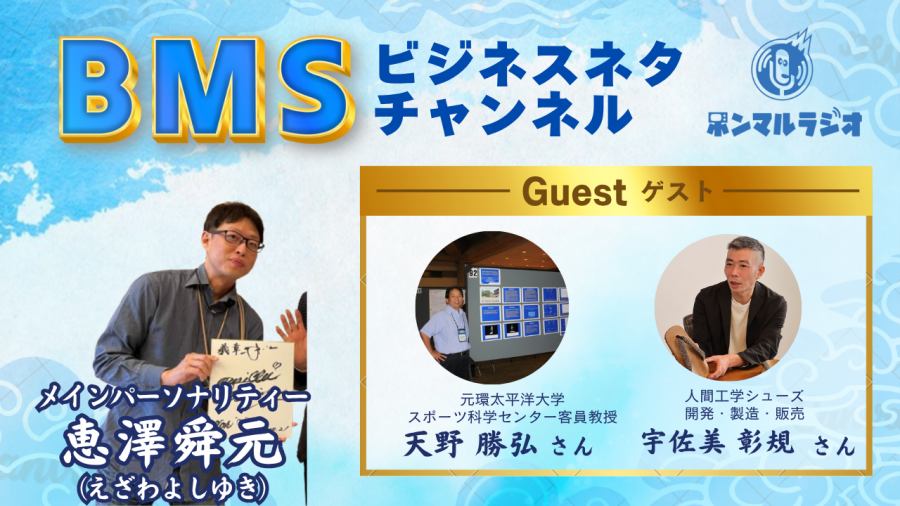 2025/10/26【BMSラジオ】BMSビジネスネタチャンネル【992回目】人間工学シューズ 開発・製造・販売の宇佐美彰規さんと天野勝弘さんが業界の舞台裏雪駄kindsettaの特徴について語ります#エンタメ・スポーツ