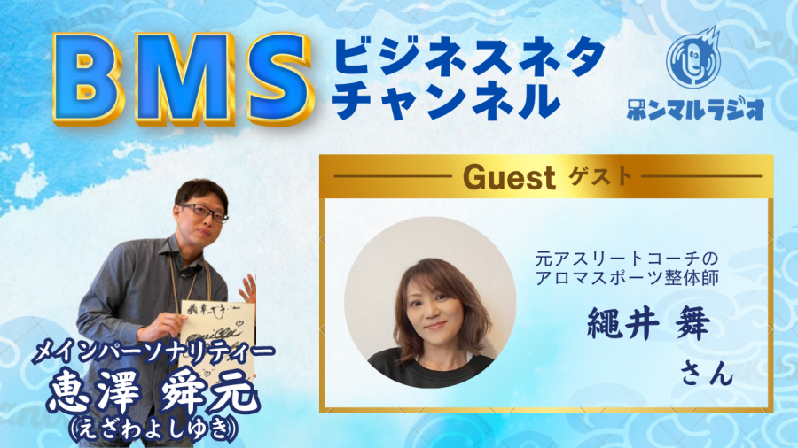 2025/11/16【BMSラジオ】BMSビジネスネタチャンネル【1013回目】元アスリートコーチのアロマスポーツ整体師の繩井舞さんが業界の舞台裏mynchアロマスポーツ整体は他の整体やリラクゼーションとの違いについて語ります#美容健康