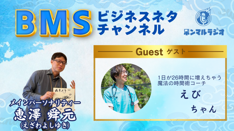 2026/02/07【BMSラジオ】BMSビジネスネタチャンネル【1096回目】1日が26時間に増えちゃう魔法の時間術コーチのえびちゃんが業界の舞台裏時間管理術、タイムマネジメントセミナーについて語ります#エンタメ・スポーツ