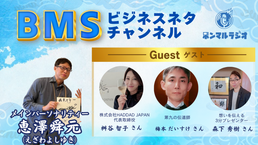 「BMS×ビジネス×○○」のテーマでいろんなコンテンツを持っているゲストをお呼びして放送10分で表層部分のお話をさせていただきます。