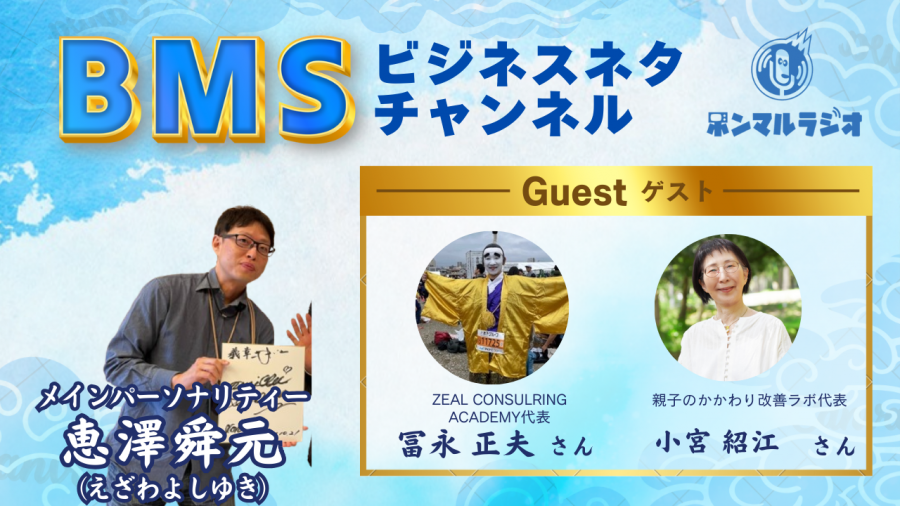 - BMSビジネスネタチャンネル【1123回目】ZEAL CONSULTING ACADEMY代表冨永正夫さんと小宮紹江さんが業界の舞台裏人間関係悩みコーチングで解決について語ります#福祉介護・生活