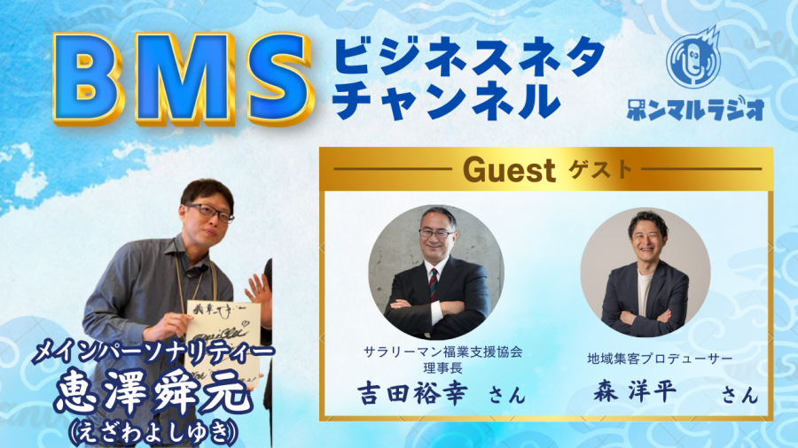 - BMSビジネスネタチャンネル【1149回目】地域集客プロデューサーの森洋平さんと吉田裕幸さんが業界の舞台裏地域密着集客サポートについて語ります #政治経済