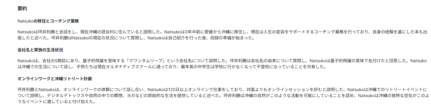 | ゲスト名 | Zoom収録【2369回】新居浜のパワースポット ちょ~さ~じゃ~新居浜 ゲスト:Natsuko Takeo 様 株式会社クァンタムリープ 代表取締役 #家族・ペット パート1(全5回) |