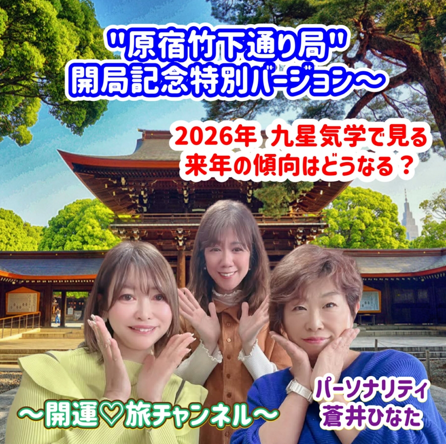 - 【蒼井ひなた】〜開運♡旅チャンネル〜 あなただけのパワースポットをナビゲーション【第60話】原宿竹下通り局 開局記念特別バージョン〜2026年 九星気学で見る来年の傾向は?#スピリチュアル