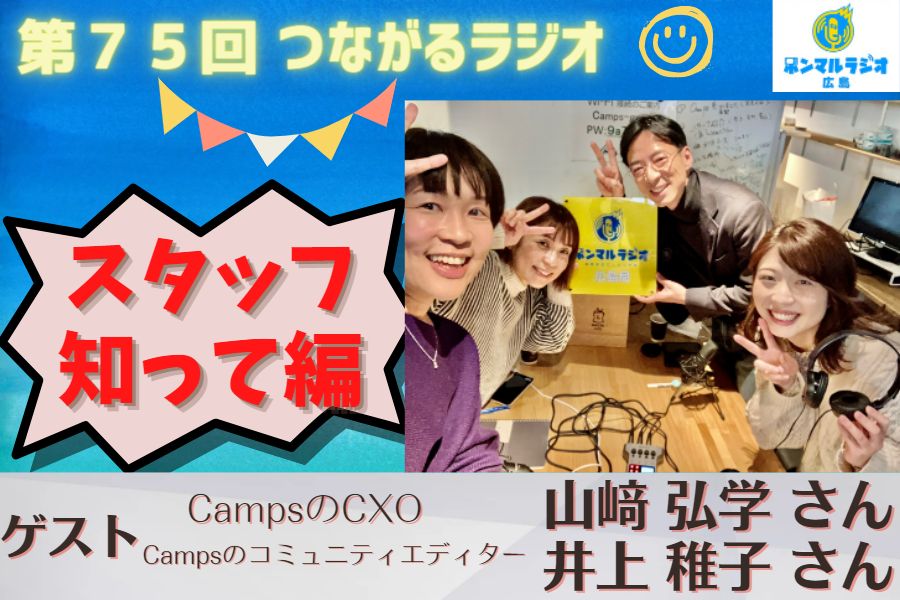 2023/01/14【広島】【第75回】つながるラジオ スタッフ知って編 ゲスト:Camps CXO 山﨑 弘学さん、Camps コミュニティエディター 井上 稚子さん #政治経済