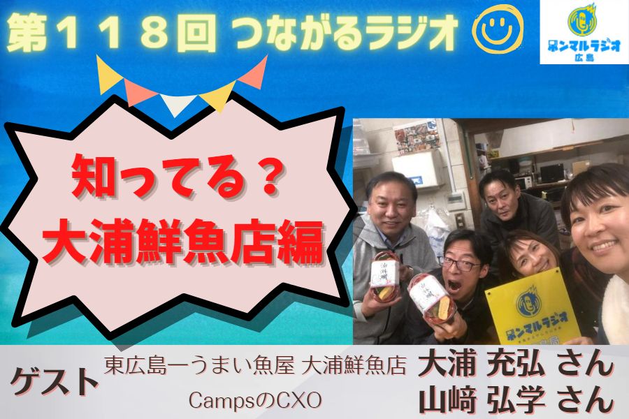 2023/02/26【広島】【第118回】つながるラジオ 知ってる?大浦鮮魚店編 ゲスト:東広島一うまい魚屋 大浦鮮魚店 大浦 充弘さん、CampsのCXO 山﨑 弘学さん #政治経済