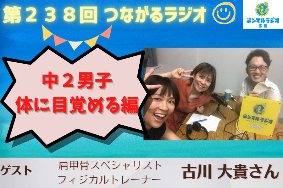 2023/06/26【広島】【238回】つながるラジオ 中2男子 体に目覚める編 ゲスト:肩甲骨スペシャリスト フィジカルトレーナー 古川 大貴さん #美容健康