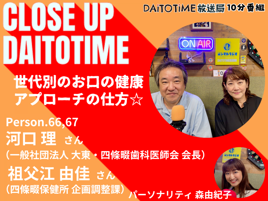 - DAITOTIME放送局『クローズアップDAITOTIME』一般社団法人 大東・四條畷歯科医師会 会長 河口 理さん&四條畷保健所 企画調整課 祖父江 由佳さん② #福祉介護・生活