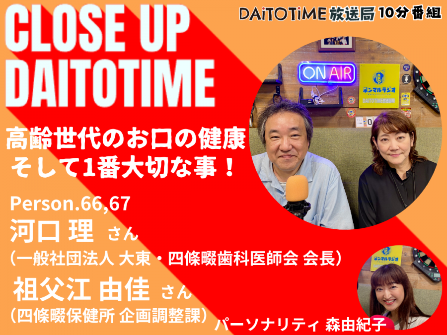 - DAITOTIME放送局『クローズアップDAITOTIME』一般社団法人 大東・四條畷歯科医師会 会長 河口 理さん&四條畷保健所 企画調整課 祖父江 由佳さん③ #福祉介護・生活