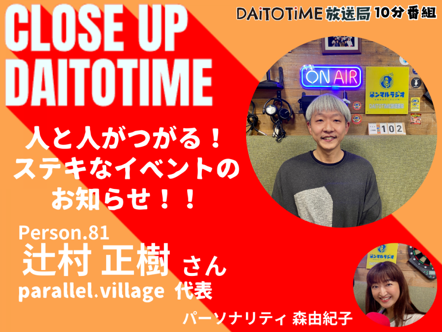 DAITOTIME放送局『クローズアップDAITOTIME』parallel.village代表 辻村正樹さん① #政治経済②人と人がつがる!parallel.village さんからステキなイベントのお知らせ!!