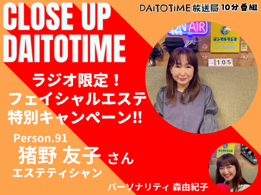 - DAITOTIME放送局『クローズアップDAITOTIME』エステティシャン 猪野 友子さん② #美容健康