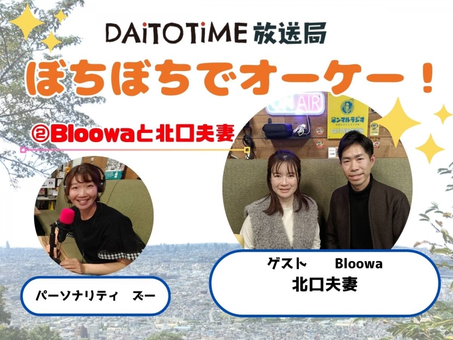 - DAITOTIME放送部総合:《子育て世代応援ぼちぼちでオーケー!》②Bloowaと北口夫妻@北口夫妻 #福祉介護・生活