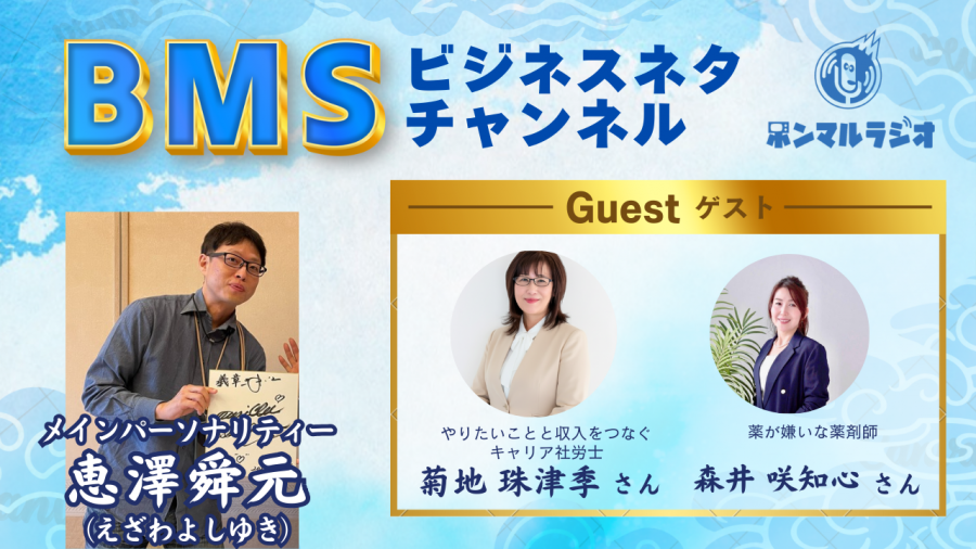 「BMS×ビジネス×○○」のテーマでいろんなコンテンツを持っているゲストをお呼びして放送10分で表層部分のお話をさせていただきます。