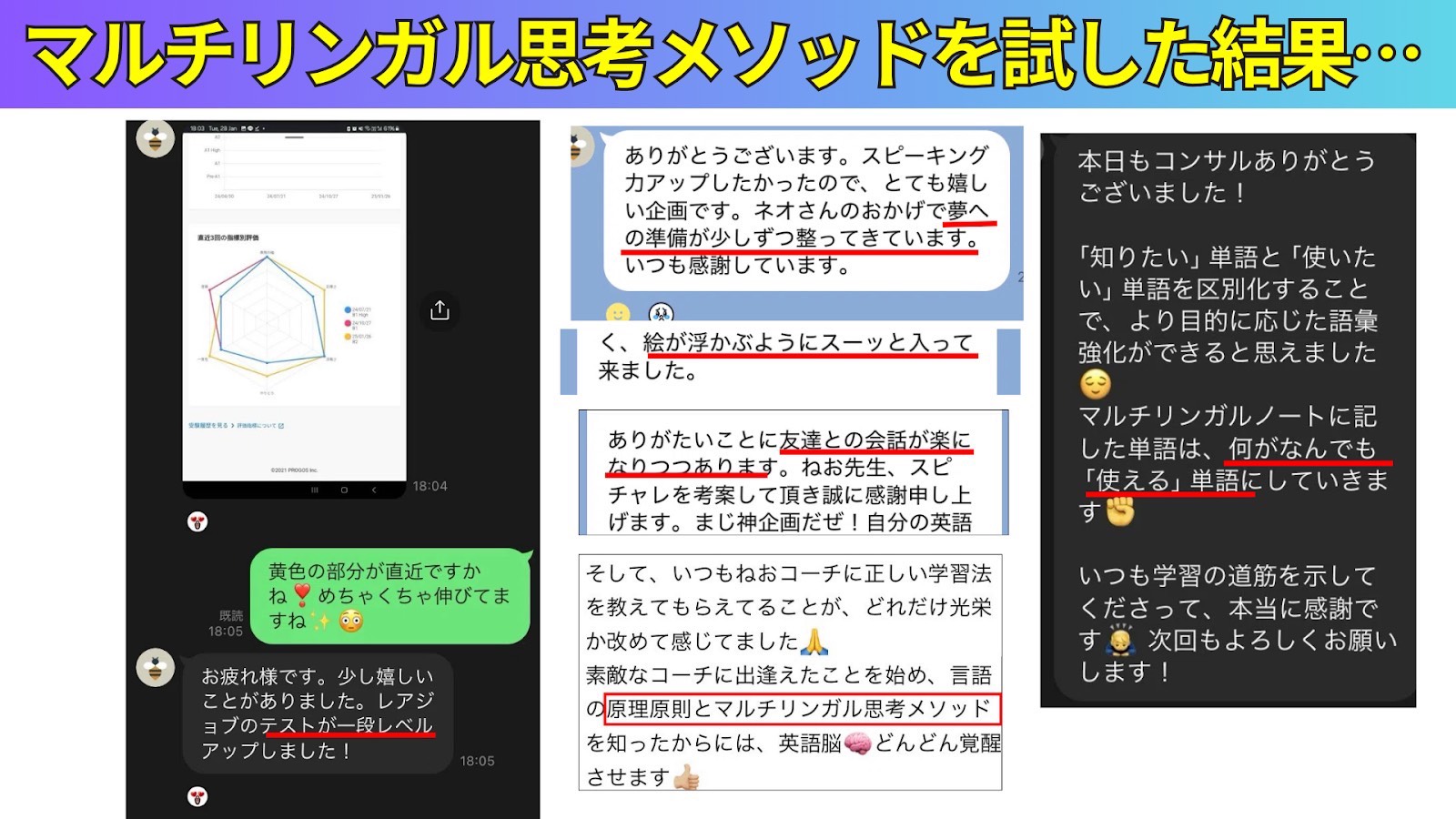 マルチリンガル思考メソッドを実践した方は↓のように