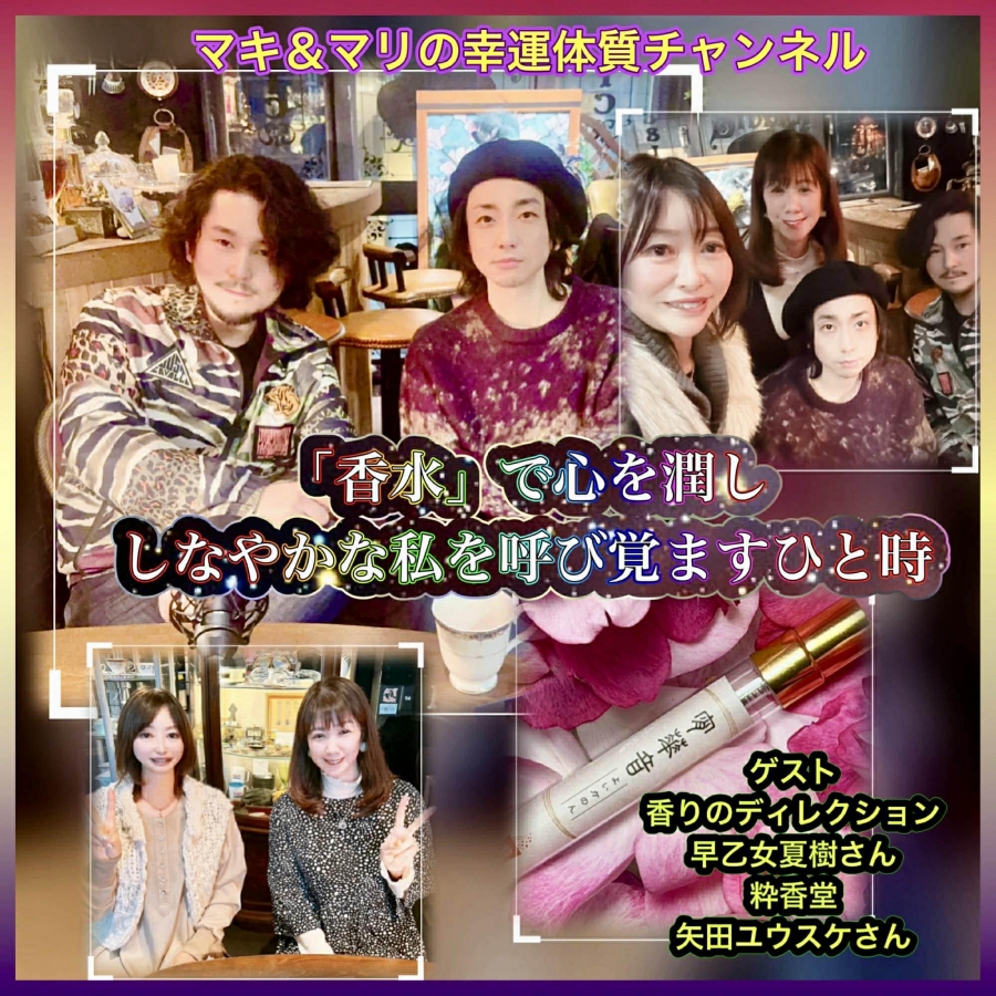 - 【福島麻紀&大藤真理子】〜人生が変わる〜 Maki&Mariの『幸運体質』チャンネル♡【第148章】香水で心を潤し、しなやかな私を呼び覚ますひと時!ゲスト:早乙女夏樹さん・矢田ユウスケさん(#美容健康