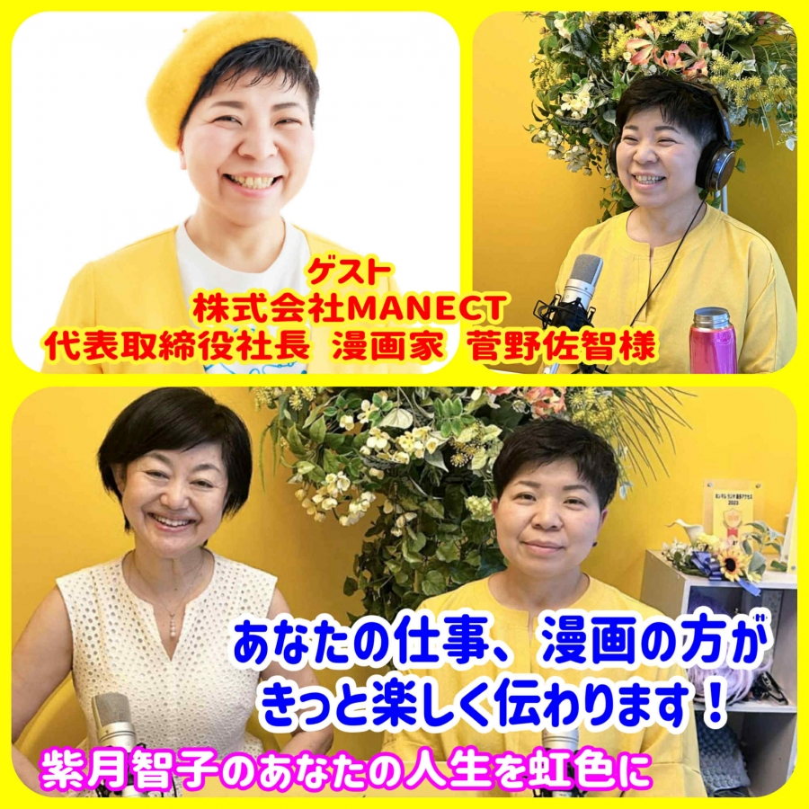 - 紫月智子の~あなたの人生を虹色に~ 第5回 あなたの仕事、漫画の方がきっと楽しく伝わります! ゲスト:株式会社MANECT 代表取締役社長、漫画家 菅野佐智様 (#政治経済)