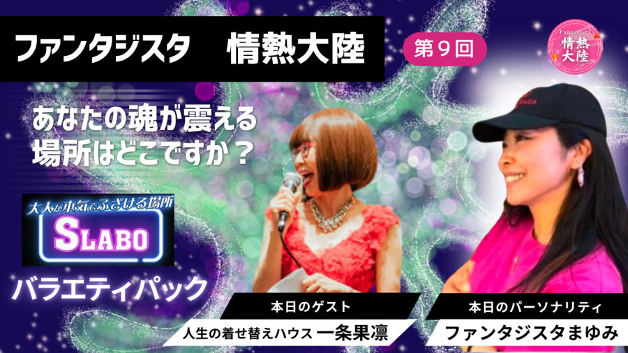 - SLABOバラエティパック【第44回】ファンタジスタ情熱大陸#9 ゲスト:一条果凜(かりん)|人生を着せ替える!世界にっこり化計画とは ~ 大人が本気でふざける場所「SLABO」