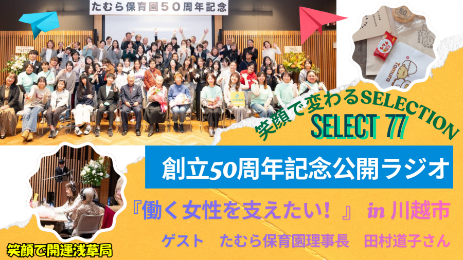 - 〜笑顔で世界を救おうプロジェクト〜☆ナビゲーターMADOKAの『笑顔で変わるSELLECTION』☆Sellect.77【川越公開ラジオ 働く女性を支えたい!たむら保育園理事長田村道子さん】#政治経済